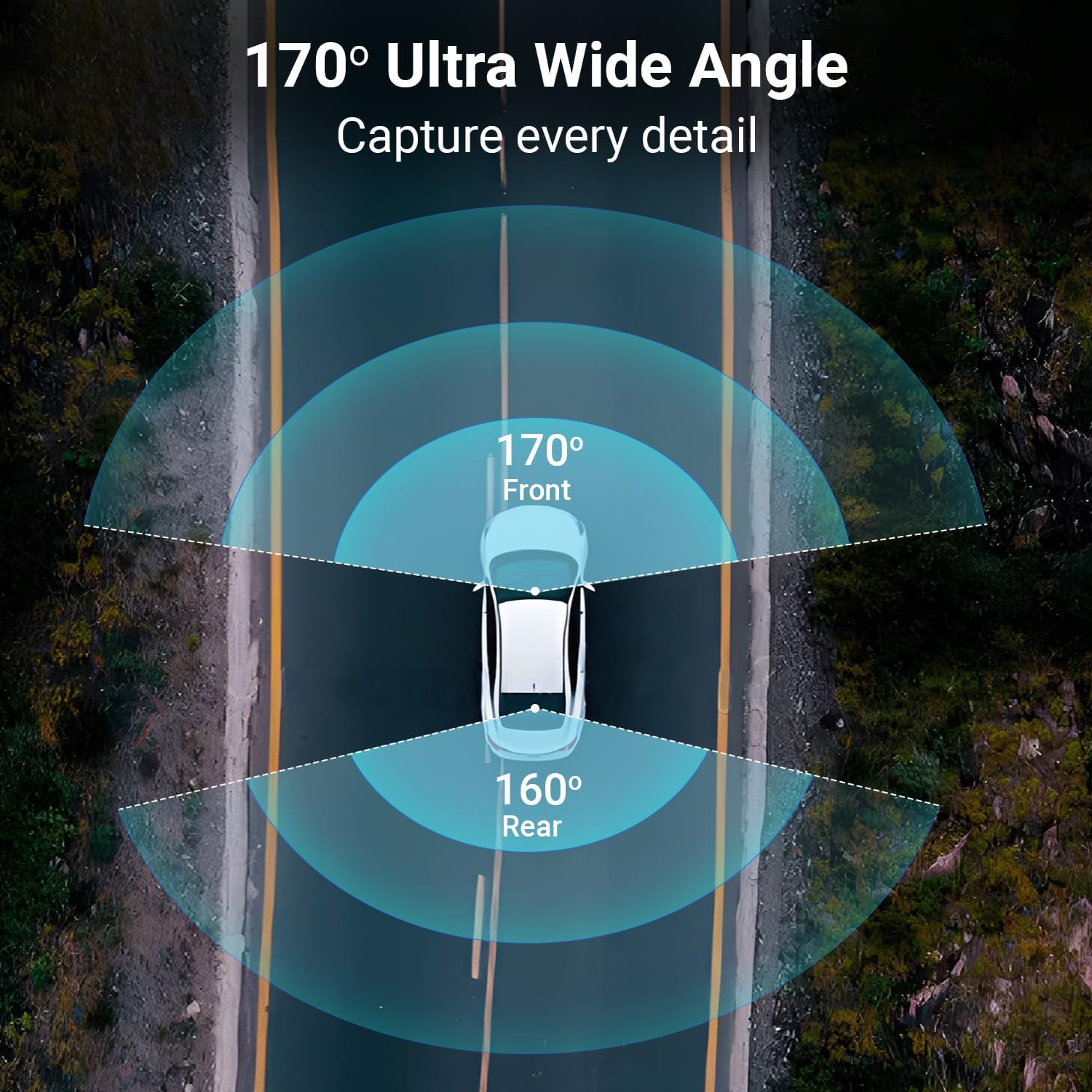 Dashcam front and rear cameras feature super crystal full HD resolution with a 170° wide-angle lens, ensuring that every detail of the entire road is captured in stunning clarity. Dashcams for cars provides complete peace of mind while driving.