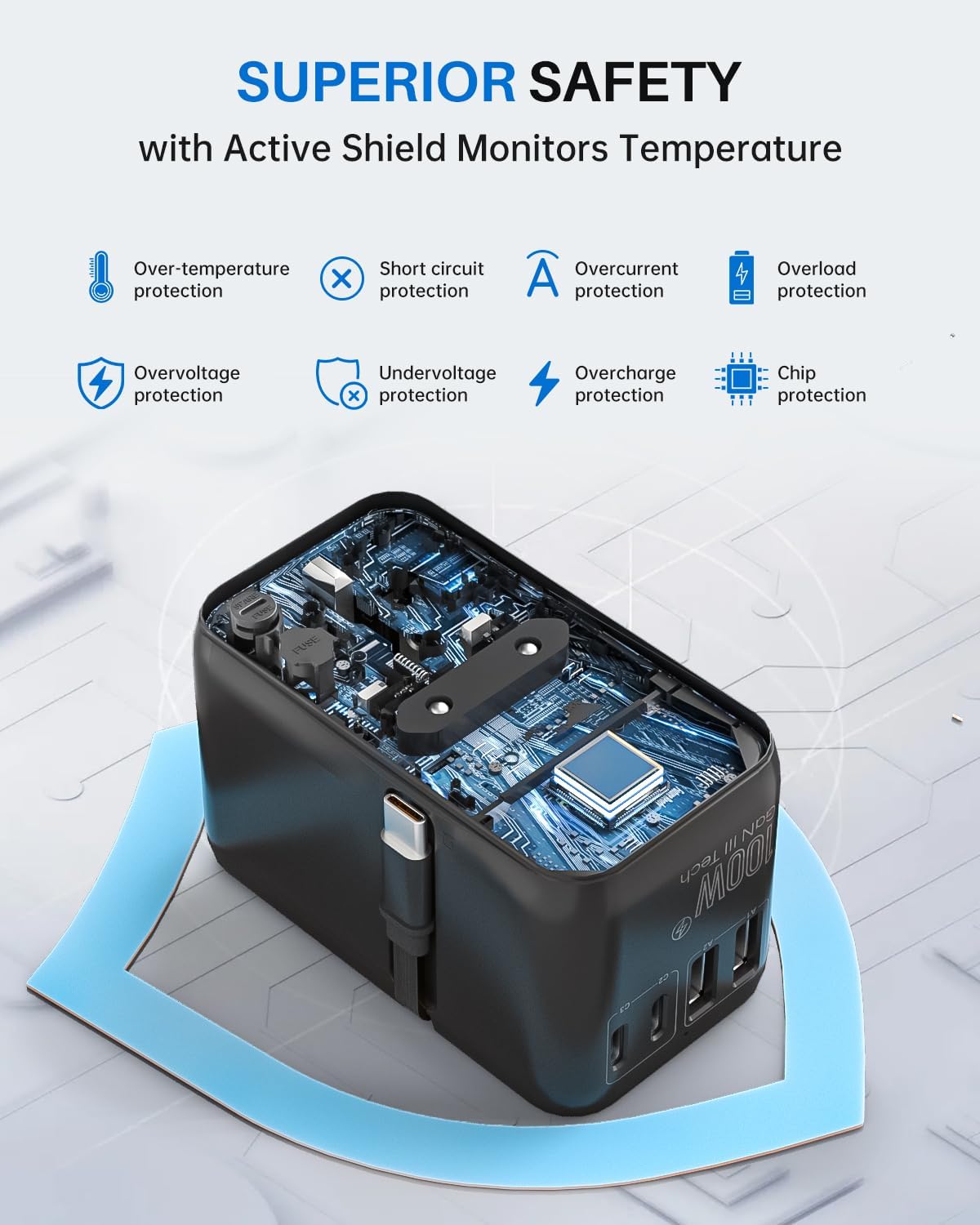 【Dual Fuses & Certified Safety】Flame-retardant PC shell + dual 10A fuses for overload protection. Features surge protection, child-safe shutters, and LED status lights. CE/FCC/RoHS certified for worry-free travel.