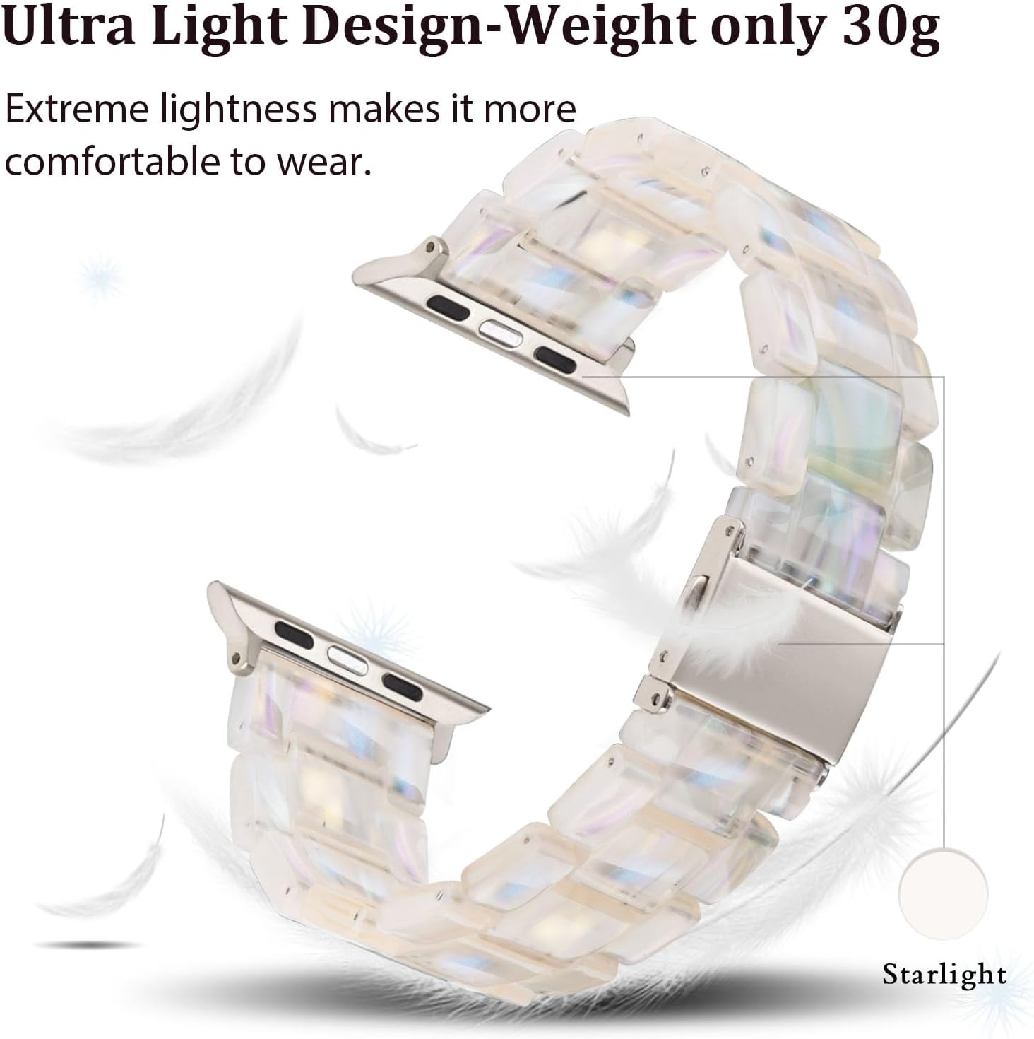 Stylish Colorful Design – From different angles of light and shadow, the band will bloom with a unique halo, and each angle can emit a different luster. The resin surface is smooth and translucent, when there is no light reflection, the band presents a milky white color.When light comes, colorful pearl bloom.