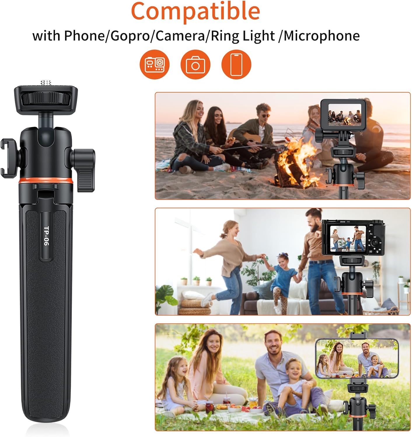Versatile Compatibility: Features a universal 1/4 inch screw on top, compatible with GoPro, DSLR, SLR, action cameras, and webcams. Ideal for selfies, live broadcasts, video recording, vlogging, travel, and family gatherings (note: does not include phone clip or Go Pro adapter).
