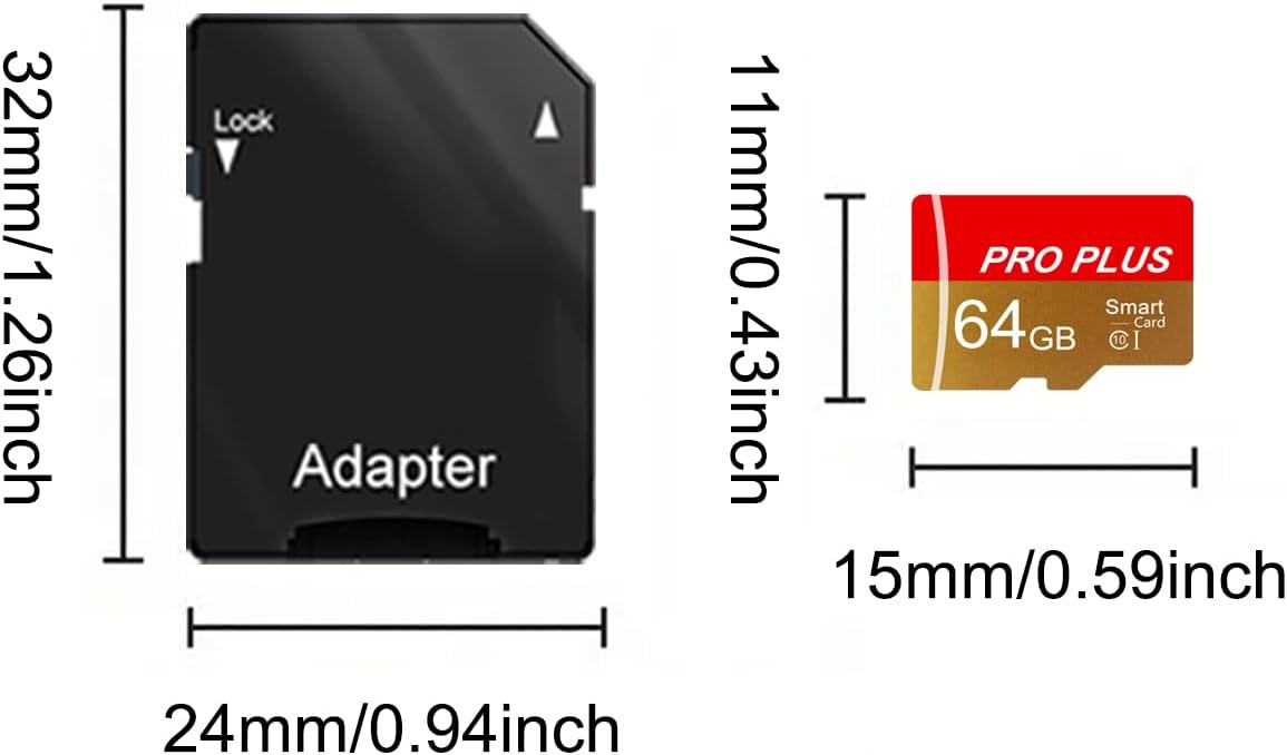 Model: TF162 Red Gold-3PCSCapacity: 64GBChip: High quality class10 chipColor:Red GoldOperating Temperature: 32º F to 158º F (0º C to 70º C).Compatibility: Mobile phones, computers, game consoles, cameras, drones, monitoring equipment, driving recorders and other equipmentWhat you get: 5 Pack TF Cards, 5 Pack Adapters