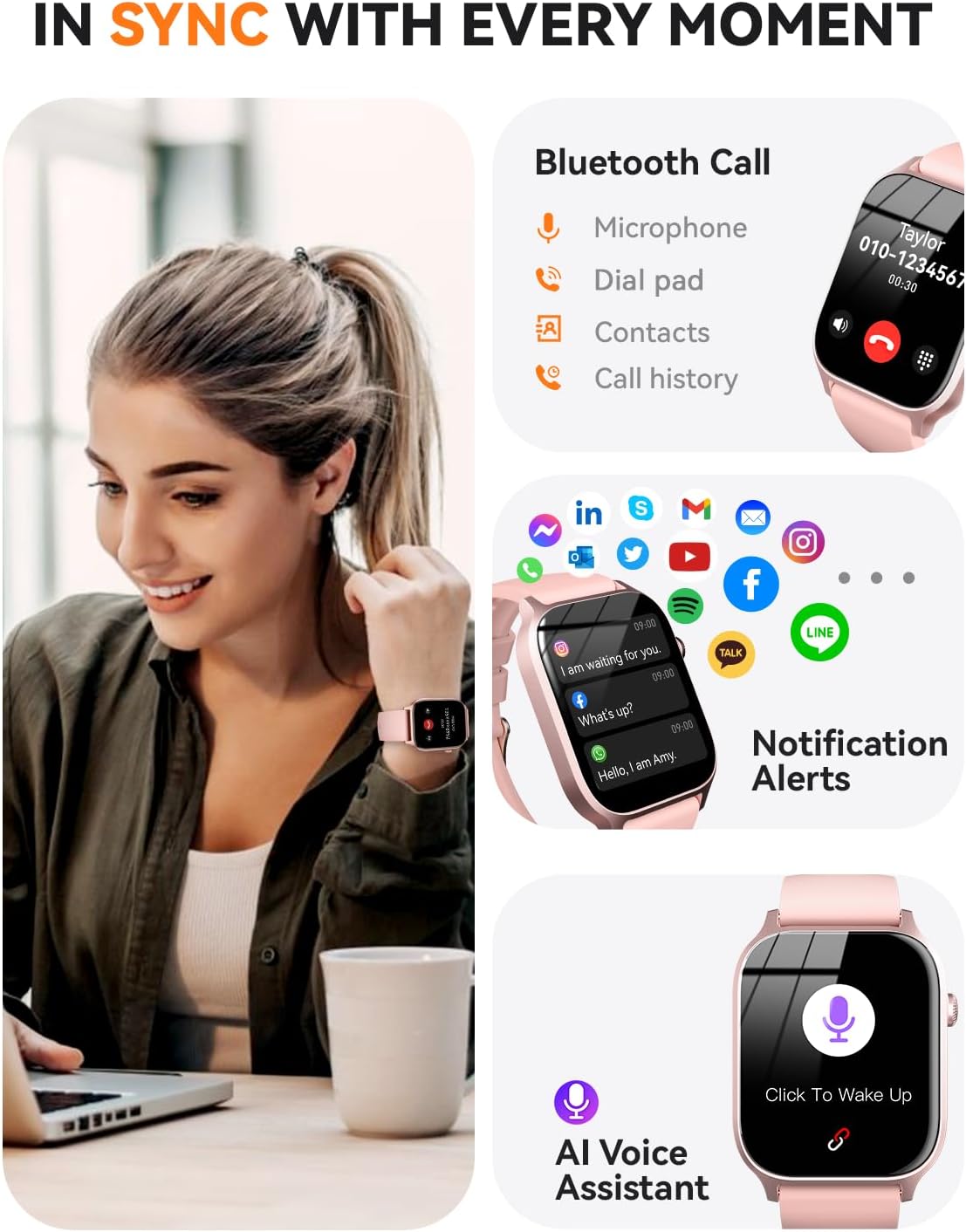 【Consistent Bluetooth Calling】This men and women smart watch comes with the latest Bluetooth 5.3 technology, delivering superior call performance, extended wireless range, and minimized power drain. Stay connected via vibration alerts for incoming calls, text messages, and notifications from apps including Facebook, WhatsApp, and Instagram.