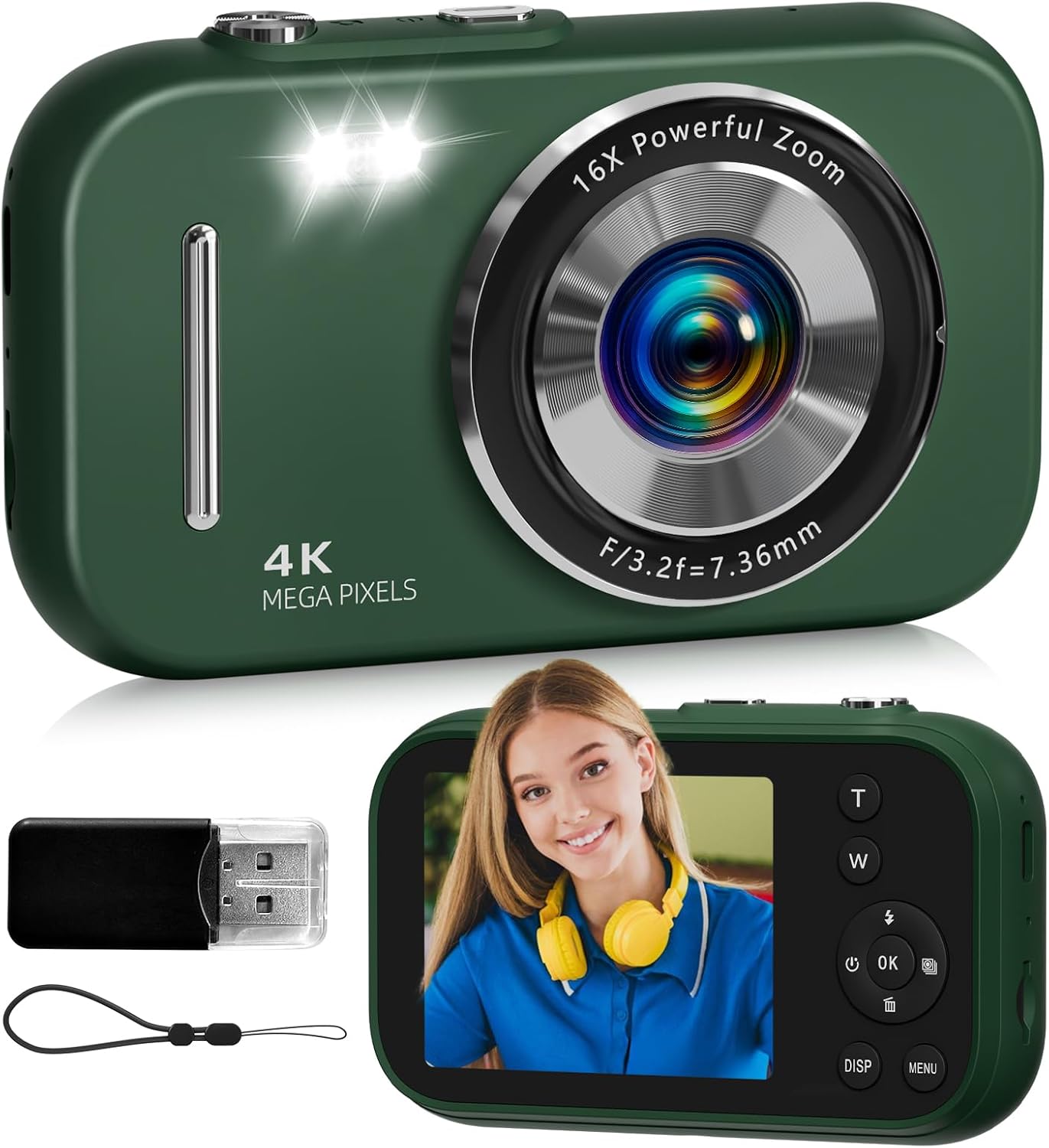 Digital Camera, 48MP FHD 4K Point and Shoot Kids Camera with Anti Shake,16X Zoom, Digital Camera for Teens with Beauty, 32GB Card, 21 Filters, Best for Kid Children Teen Student Girl Boy