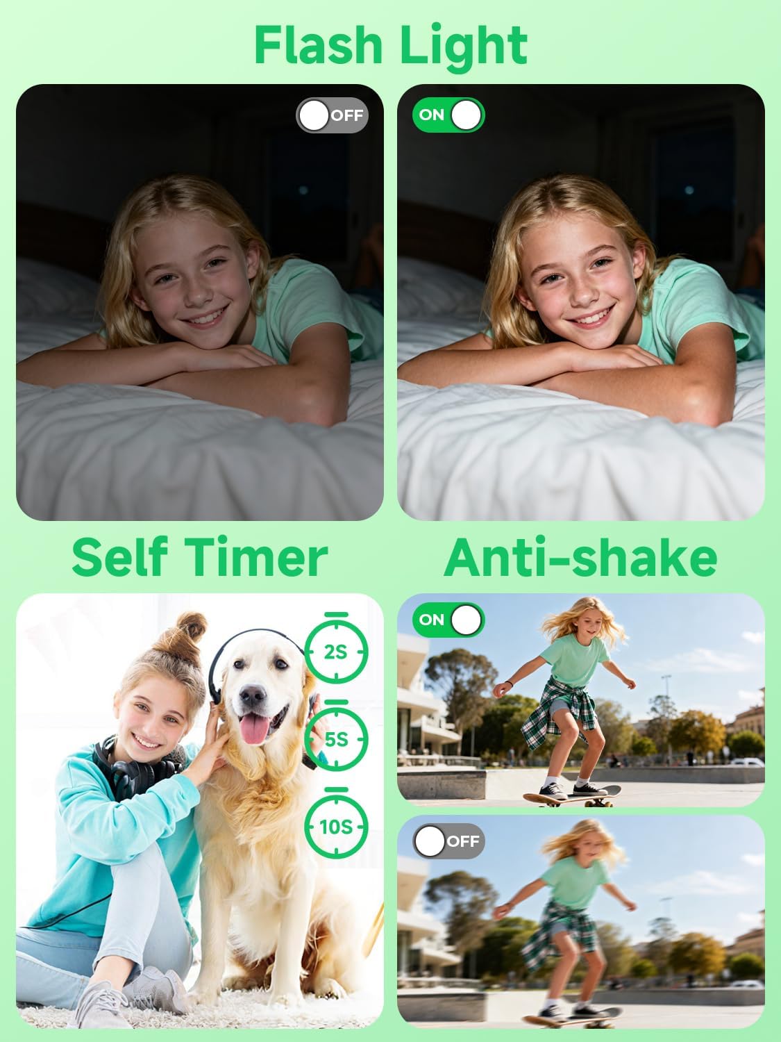 16X Digital Zoom & Versatile Shooting Modes: Equipped with 16x digital zoom, this compact digital camera lets you easily present distant subjects clearly. Its built-in image stabilization technology ensures photos are stable and detailed. Additionally, it also features motion detection, continuous shooting, self-timer, and slow-motion functions, making it an ideal camera for recording family gatherings, friend parties, and other joyful occasions.