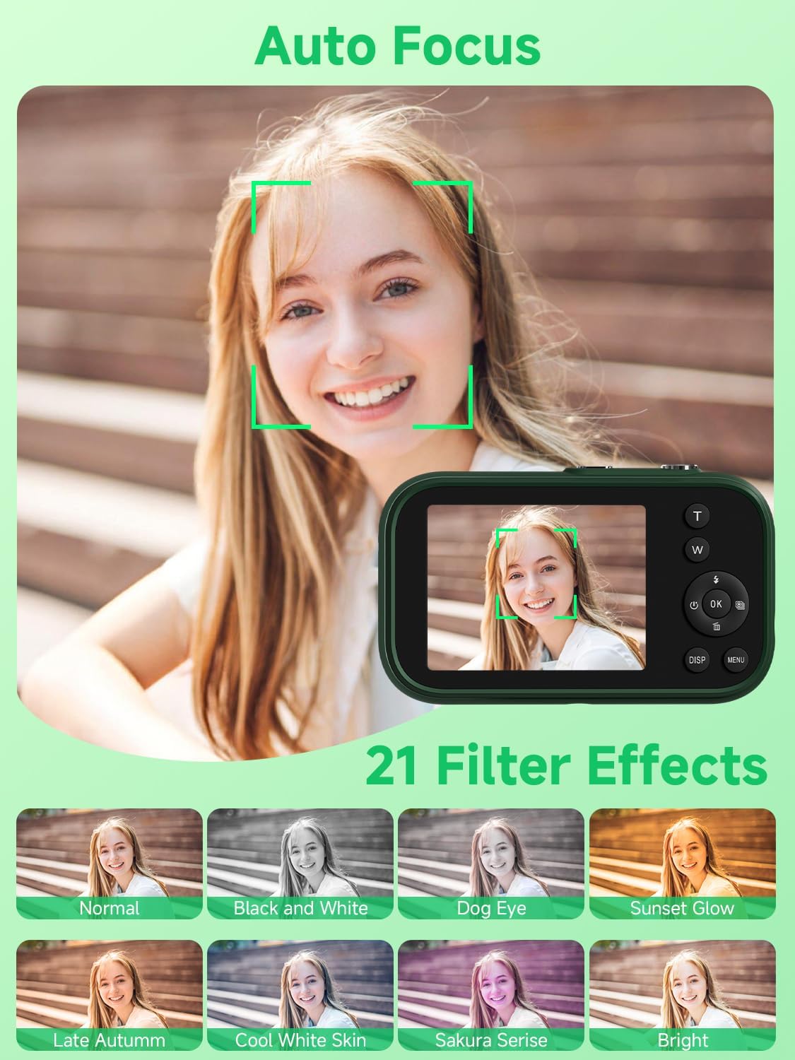 Beauty Filter & Framing Grid: Digital camera comes with natural beauty enhancement, which optimizes skin tone and reduces blemishes while preserving a realistic texture. Equipped with smart grid lines, it aids framing based on classic composition principles, allowing even beginners to take balanced, visually appealing shots. It works well for selfies, group photos, outdoor shooting, and more scenarios.