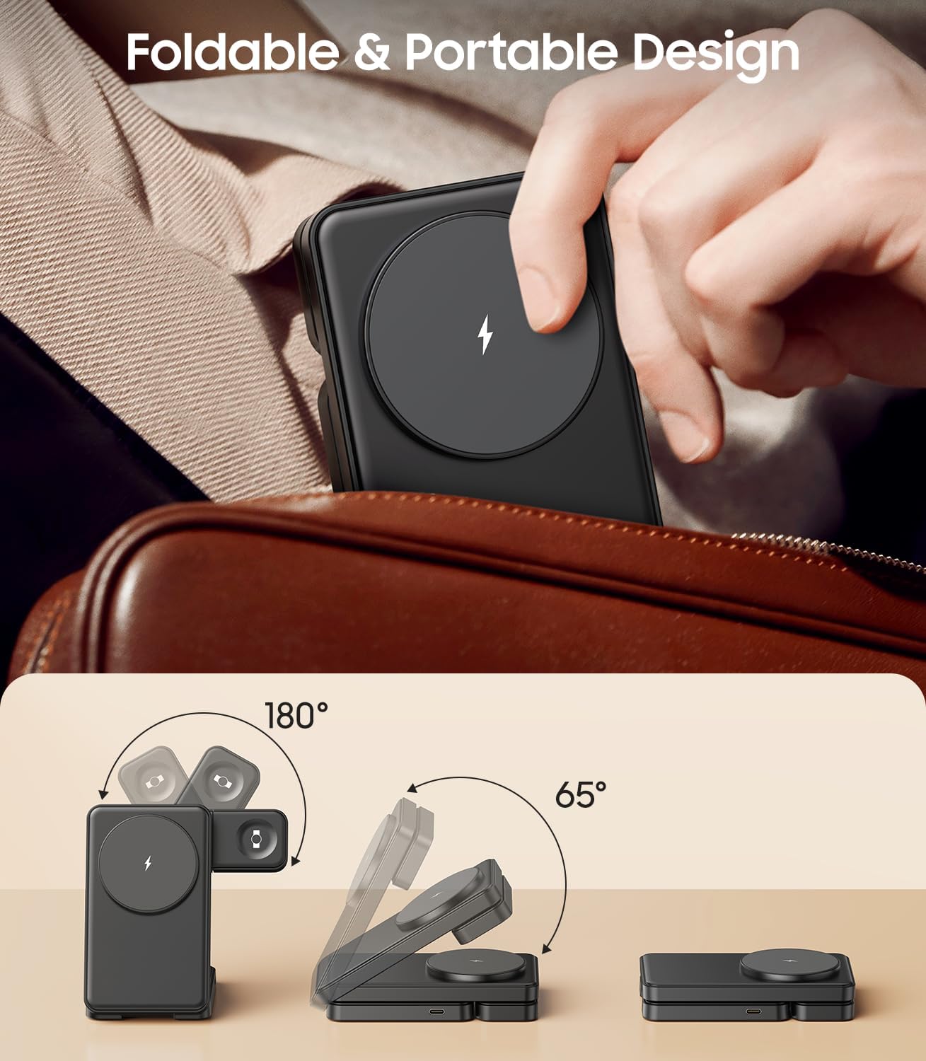 Foldable, Compact, and Portable: This 3 in 1 wireless charging station doubles as a wireless charger pad and easily folds for convenient portability. When fully folded, it’s even smaller than the Samsung S24 Ultra—compact and lightweight, making it perfect for on-the-go use. Say goodbye to tangled wires and extra chargers. It’s the ideal choice for travel or business trips