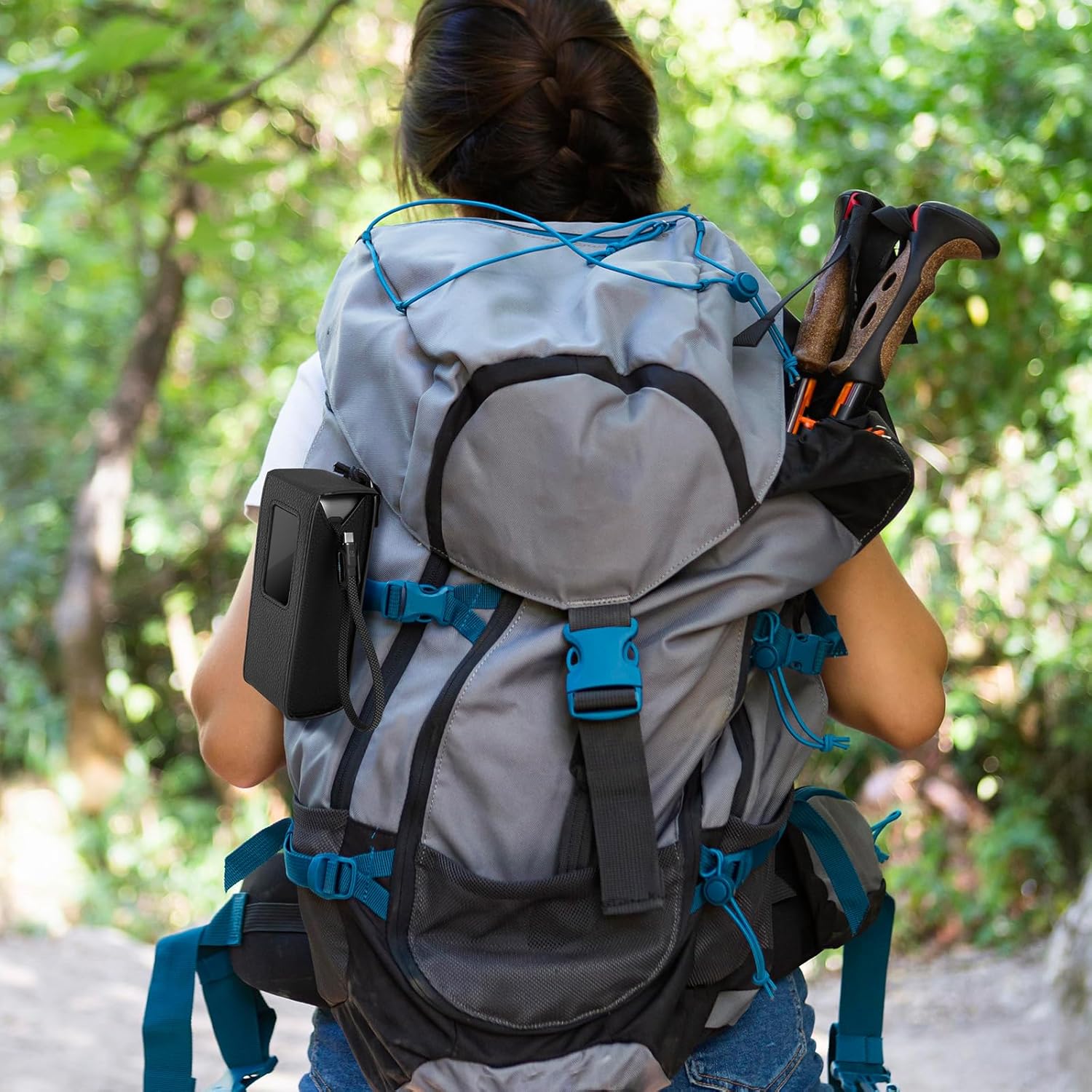 【EASY PORTABILITY】Built-in belt loop & detachable carabiner for waist/backpack attachment + can use power bank’s own cable as handle.