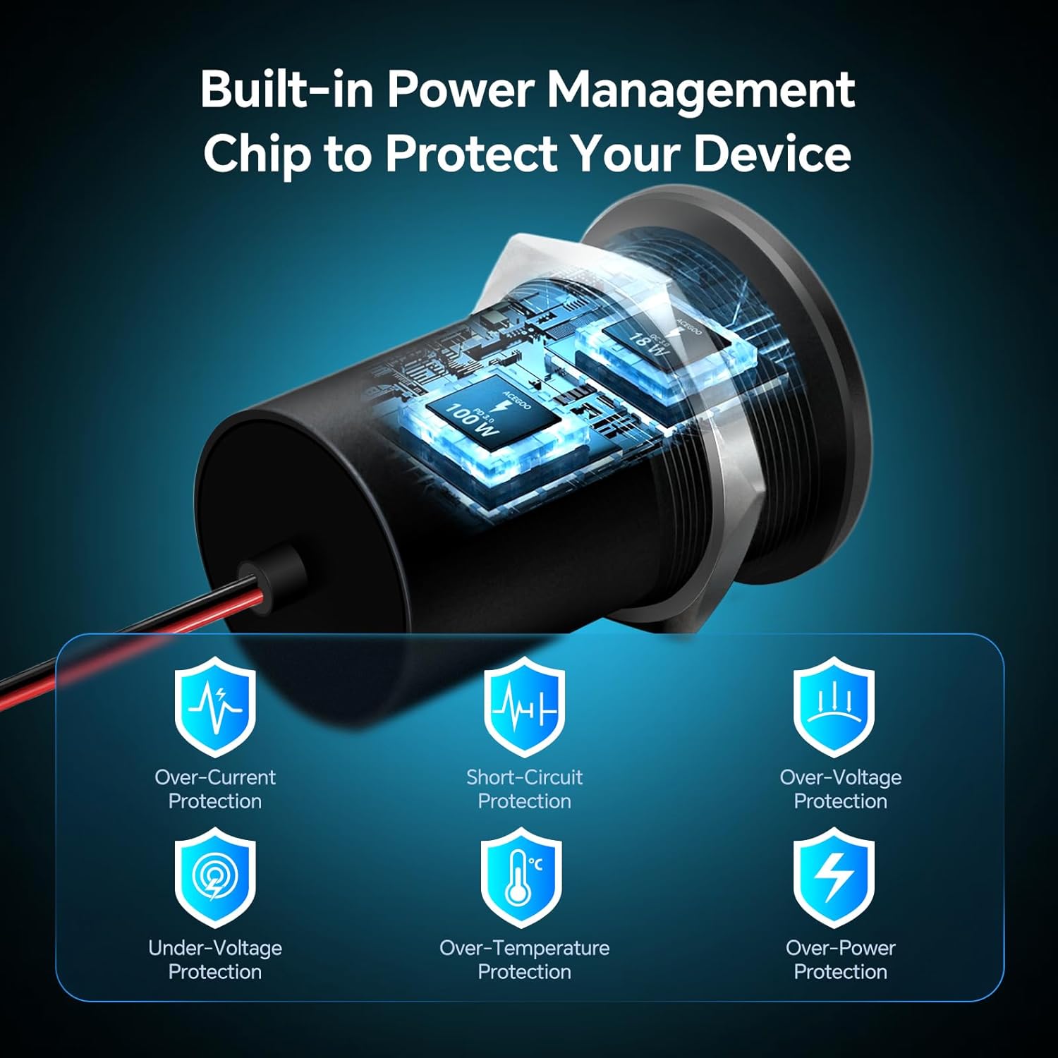 16AWG Wiring & Multiple Protections: 16AWG heavy-duty wiring ensures stable 100W output while keeping you and your devices safe. The Car USB Charger’s built-in smart chip protection (including short-circuit, overheat, and overcharge safeguards) shields both your devices and your vehicle’s electrical system