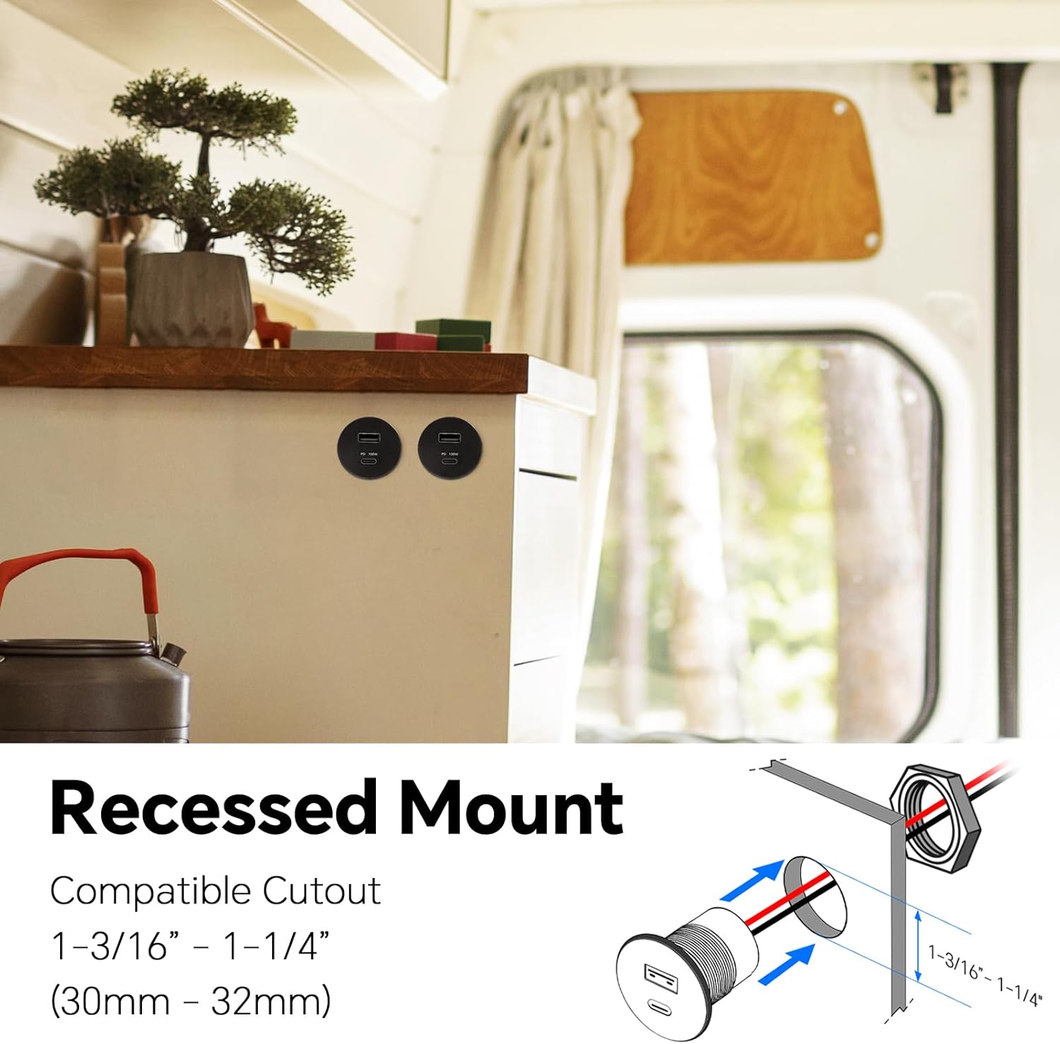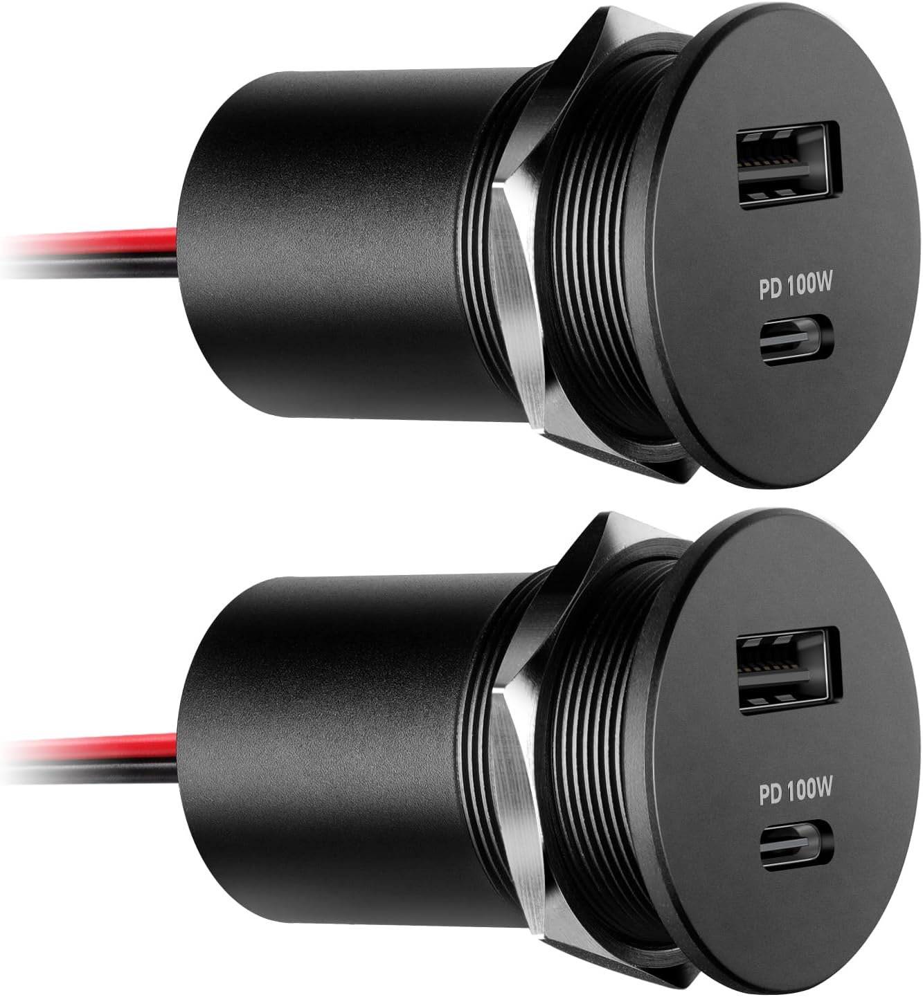 Brand Acegoo Connector Type USB A/USB C Number Of USB Ports 2 Compatible Devices Smart Watches, Dash Cameras, E-Book Readers, Smart Devices,Laptop,Power Bank,Drone Input Voltage DC 12V-24V Material CNC Milled Aluminum Power Source Corded Electric Output Voltage 5V / 9V / 12V / 20V Special Feature PD 3.0+QC 3.0/ Fast Charging/ Muti-Protect/ All-Aluminum Safety Protect Over-voltage/Over-temperature/Over-current Protect Output Power 100W(Type-C)/18W(USB-A) Drill Hole DIA 1-3/16” – 1-1/4” (30mm – 32mm) Height 2” (52mm) Quality Assured 24 Months