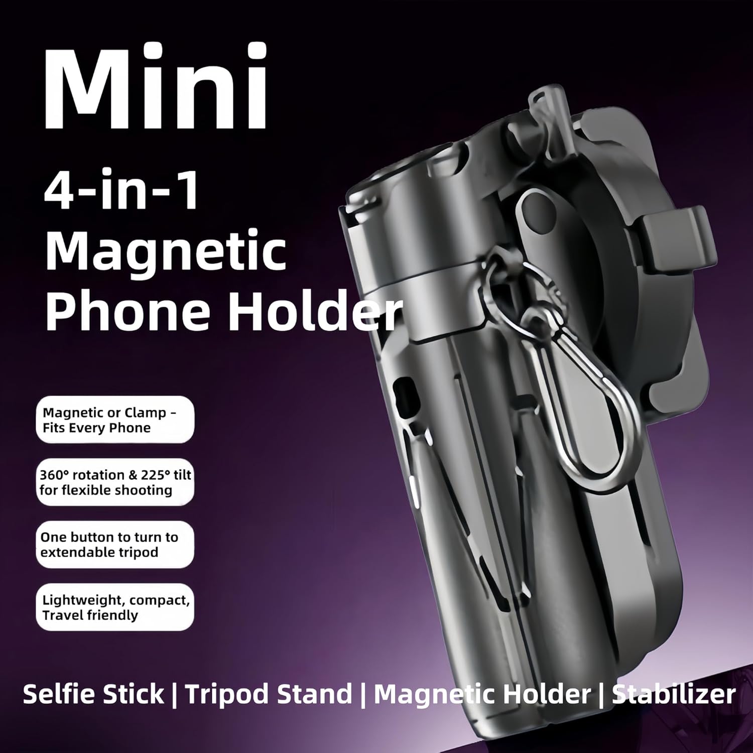 [4-in-1 Phone Tripod with Magnetic Mount] – Combines selfie stick, tripod stand, desktop holder, and stabilizer in one. Perfect for video recording, travel photos, social media content, or virtual meetings.