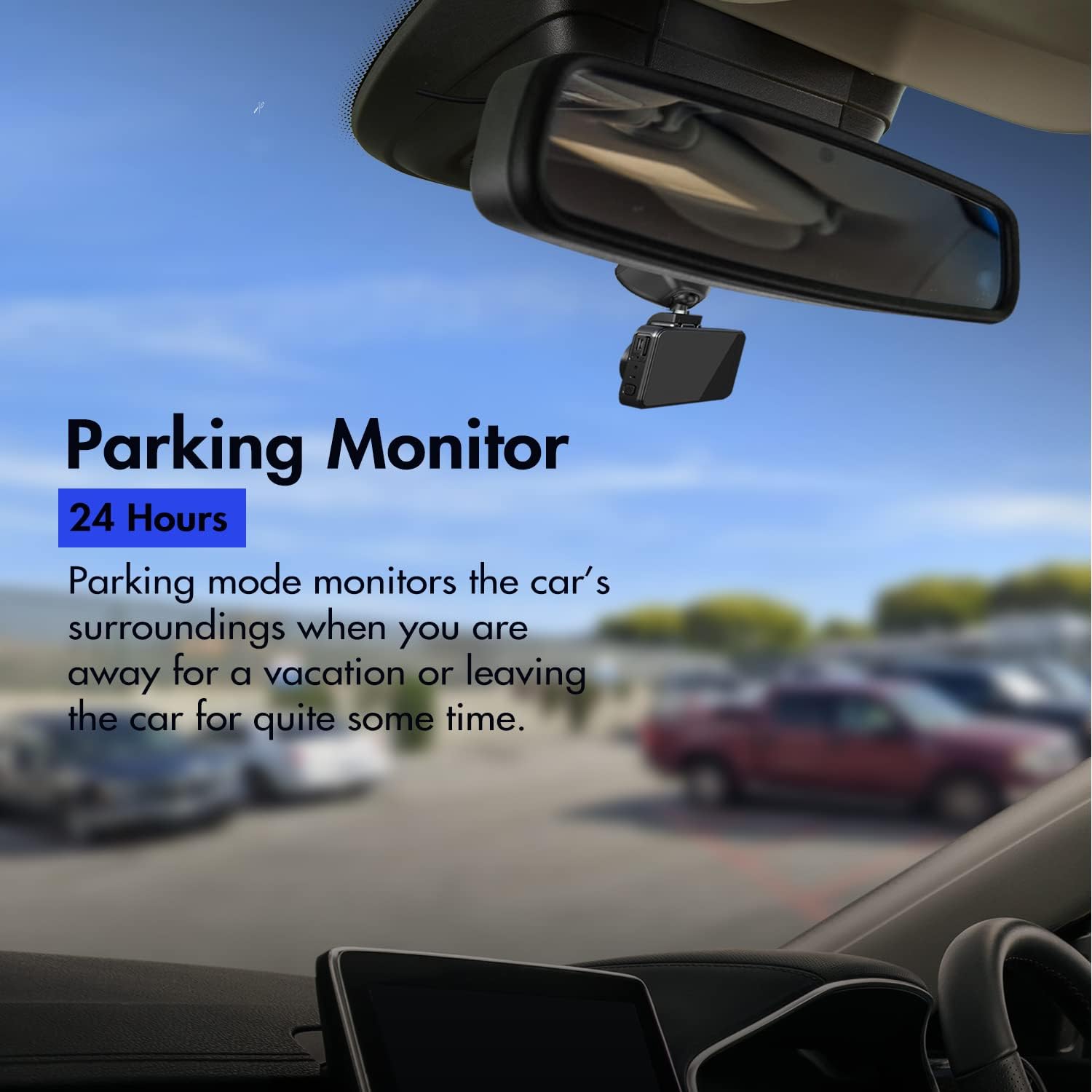 【24H Parking Mode】 Automatically save a locked video when you get car accident in your driving or someone try to get into your parked car. With 24-hour parking monitor, you can always get the video evidence when you need them for special cases.