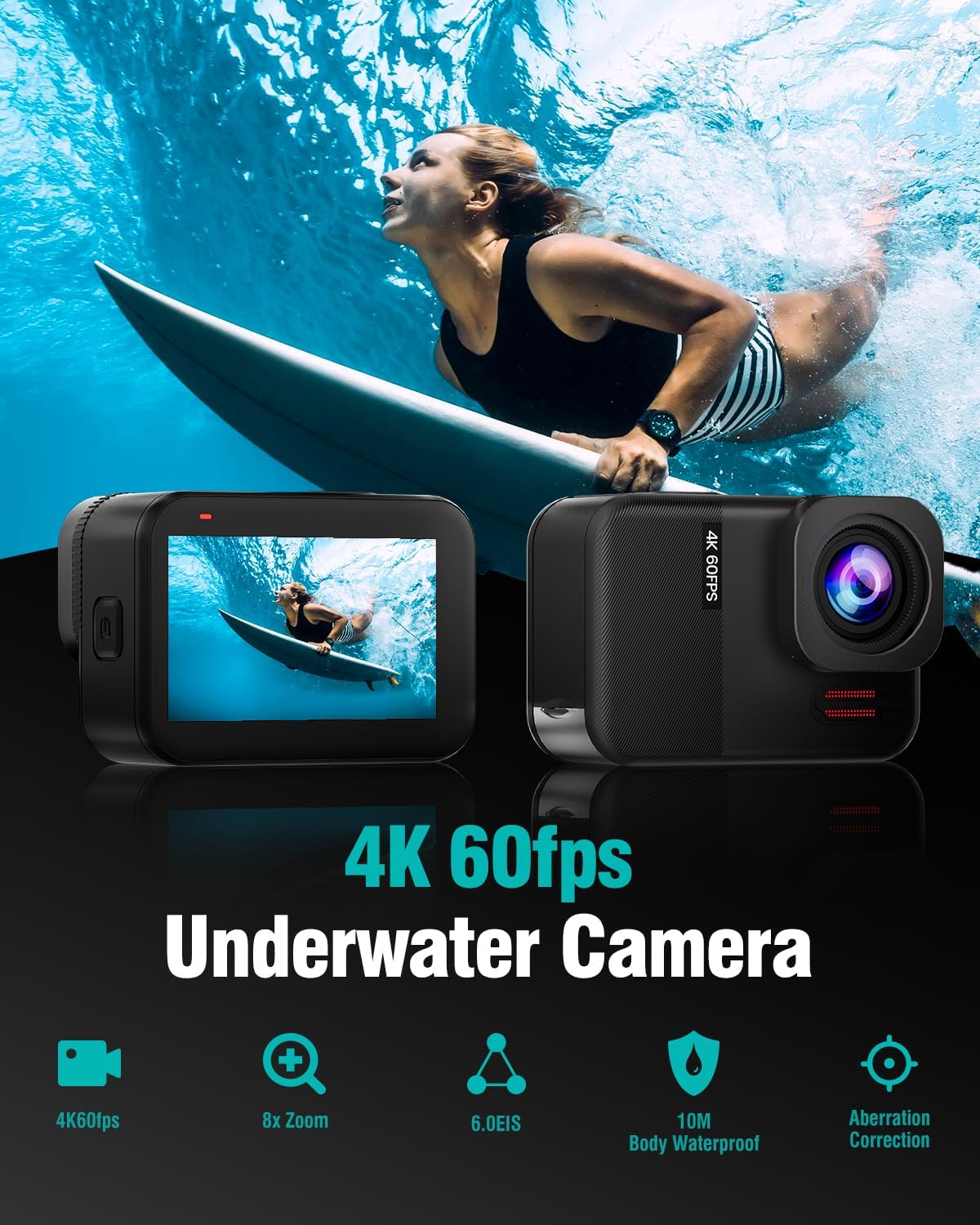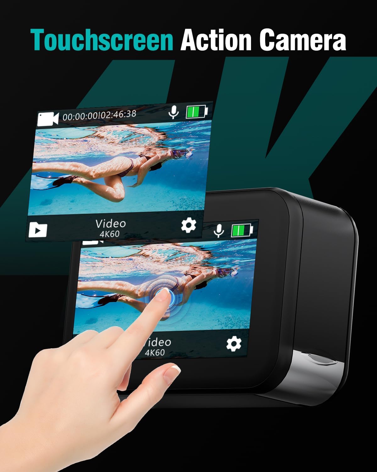 4k60fps Touchscreen Action Cameras: Crystal-Clear Control! 2-inch IPS touchscreen delivers vivid 4K60fps footage for your adventures. Instantly frame shots and review ultra-HD action – whether you’re diving deep or shredding trails, every detail pops on the bright, responsive display.