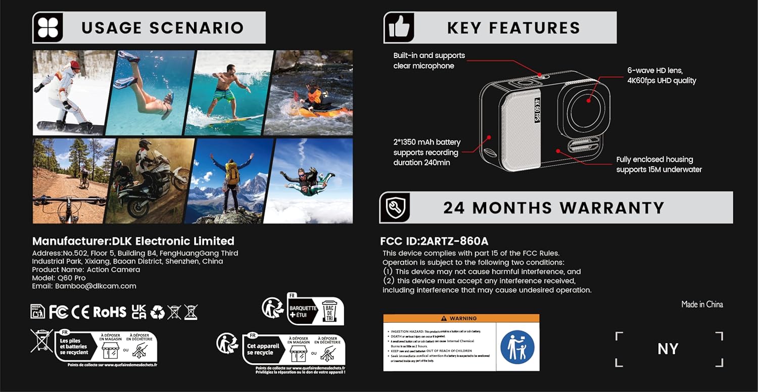 4K Sports Camera with 8x Zoom: Never Miss a Moment! From sweeping landscapes to close-up action, this 4K60fps touchscreen action camera combines a ultra-wide lens with 8x digital zoom to capture every detail of your outdoor adventures. Dive into vibrant underwater worlds, race down rugged trails, or conquer towering cliffs—all while recording crystal-clear, distortion-free footage.