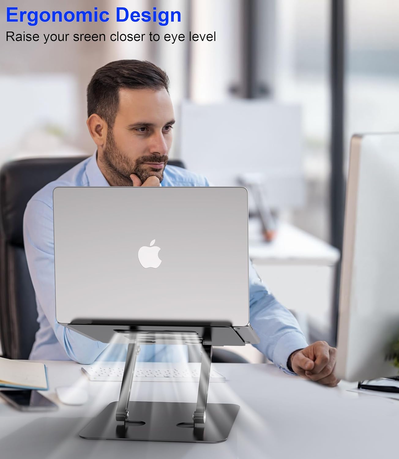 More stability: The office computer stand is made of high-quality thickened aluminum, and the larger and heavier turntable base can support 22 pounds (10 kg), which is more stable and stronger without worrying about any shaking.Rubber non-slip strips on the stand add friction to protect your laptop from scratches and slippage