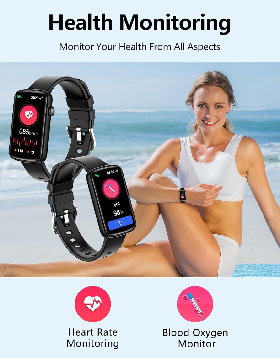 HEALTH MONITORING: Advanced sensors track heart rate, blood oxygen levels, and sleep patterns 24/7 for comprehensive health insights