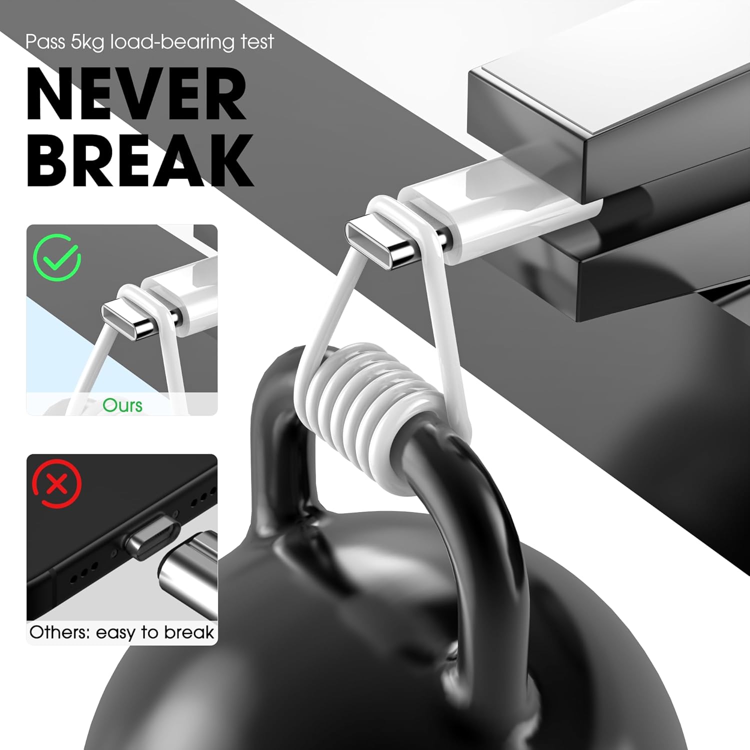 [Durable USB C Charging Cable – 15000+ Bend Lifespan] Crafted from high-quality TPE material, this cable feels just like the original charging cord — smooth, flexible, and soft to the touch. It resists tangling and is built to withstand over 15,000 bends for long-lasting performance without cracking or fraying.