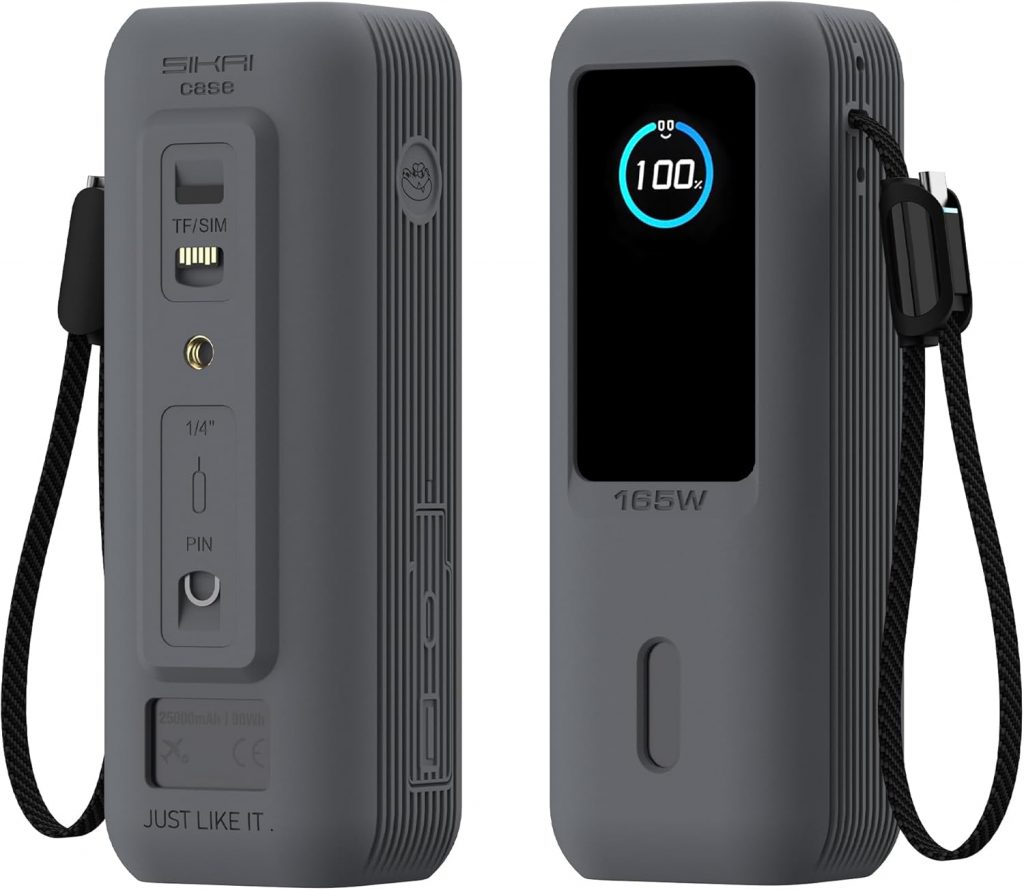Silicone Case for Anker Laptop Power Bank (25,000mAh 165W) 1/4″ Nut Hole,SD/SIM Card Storage, Display Protection&Dustproof, Travel Protective Cover Compatible with Anker Power Bank 165W (Gray)